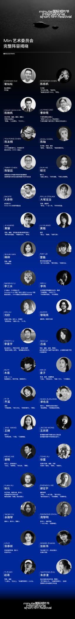 自7月26日征片开启,Minute国际短片节已征集5000+部优质短片作品,并组建了创新、多元的Min 艺术委员会。该委员会由身份不同的36位成员组成,从国际与国内的顶级导演、制⽚⼈、演员、编剧、美术指导、视觉艺术家到短片创作的跨界玩家:作家、艺术家、影评人、音乐人、视频KOL,Minute 致力于提供新锐的跨界创作观点。